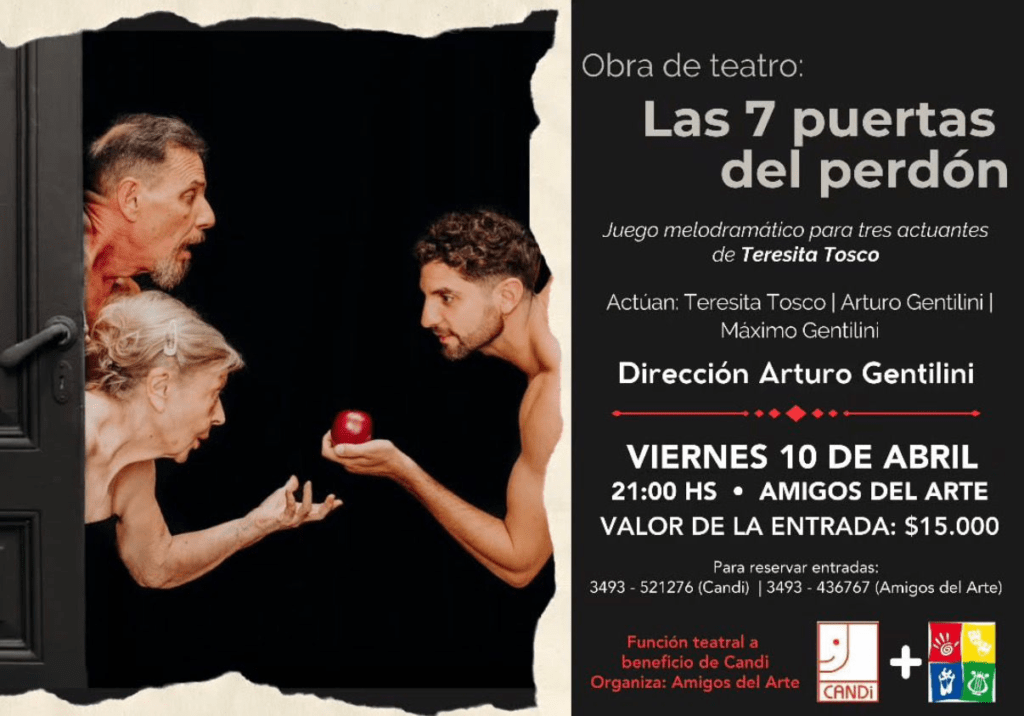 Llega este viernes 10 de abril "Las 7 Puertas del Perdón", una obra de teatro argentina escrita por Teresita Tosco, protagonizada por la autora junto a Arturo y Máximo Gentilini.
