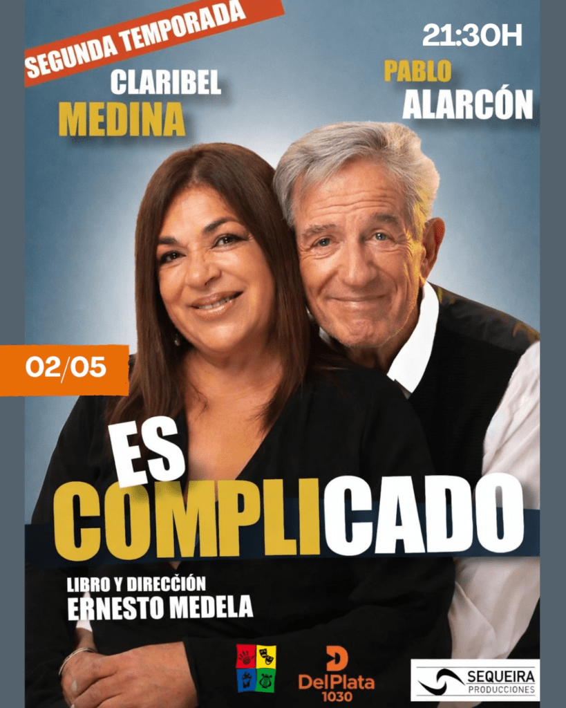 La querida dupla actoral, Claribel Medina y Pablo Alarcón, vuelve a reunirse en escena, luego de una gran cantidad de años, con “Es Complicado”, un texto que también le dejará su lugar al humor y a la emoción.