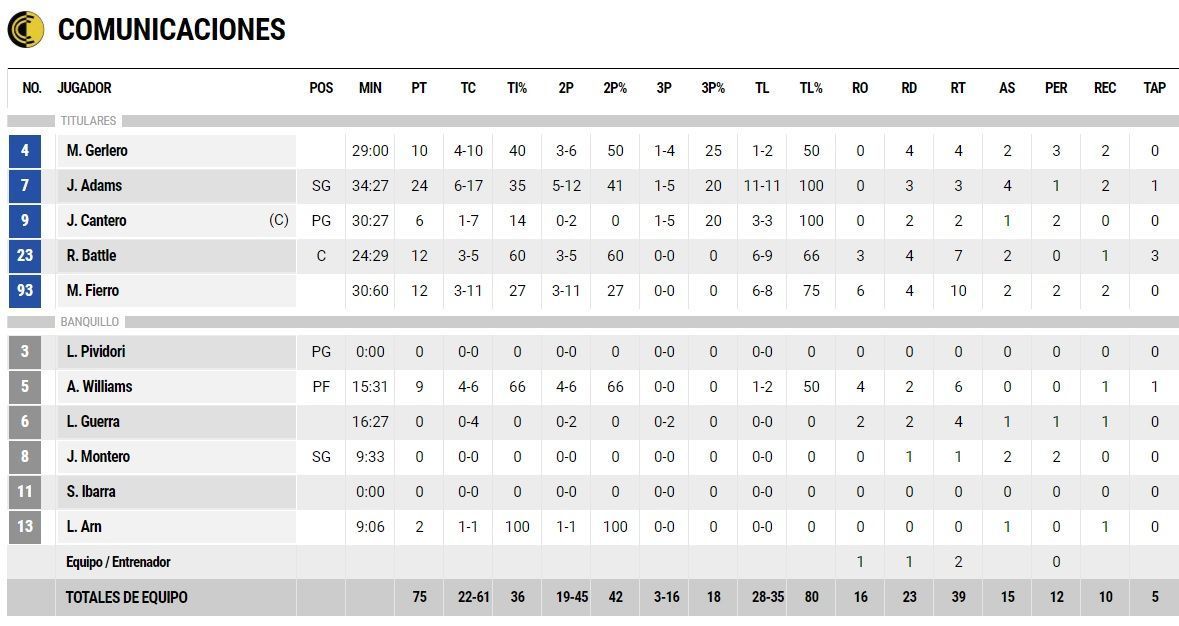 Los correntinos reaccionaron con una ráfaga de 6 a 0. Fue gol por gol hasta el desenlace, y se le dio a Comunicaciones por la jerarquía de Jason Adams (24 puntos – 11 de 11 en libres).