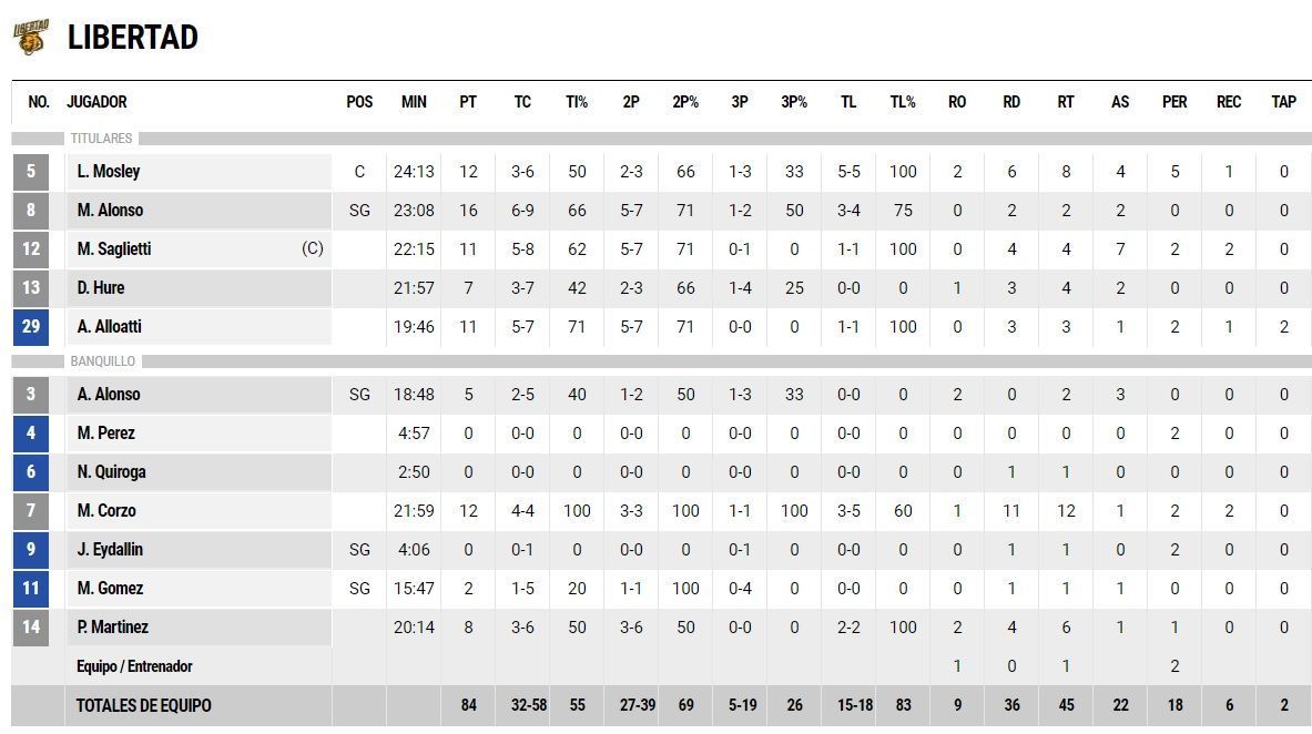Manuel Alonso (16 puntos) fue el goleador cañonero. Pero desde el banco quien reapareció en gran nivel fue Mauricio Corzo. El alero cerró la noche con 12 tantos y 12 rebotes.