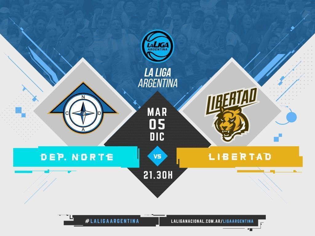 ¡Promesa de buen básquet en el estadio "Jorge Ferrero"! Norte y Libertad pondrán en juego la punta de la División Centro Norte de la Liga Argentina desde la hora 21.30.