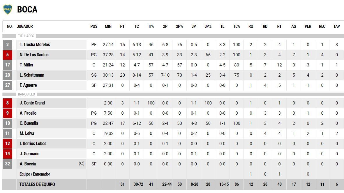 Latraius Mosley (16) y Manuel Alonso (13) fueron los goleadores aurinegros. Leonel Schattman (20) y el base subrogante Carlos Manuel Buendía (17) fueron los más destacados en el "Xeneize".