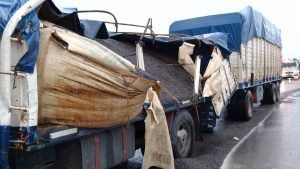 Producto de la colisión lateral el camión perdió una gran cantidad de granos de girasol y su chofer sufrió lesiones leves, en tanto el colectivo siguió viaje sin demasiadas demoras más que las lógicas en una situación de ésta naturaleza.