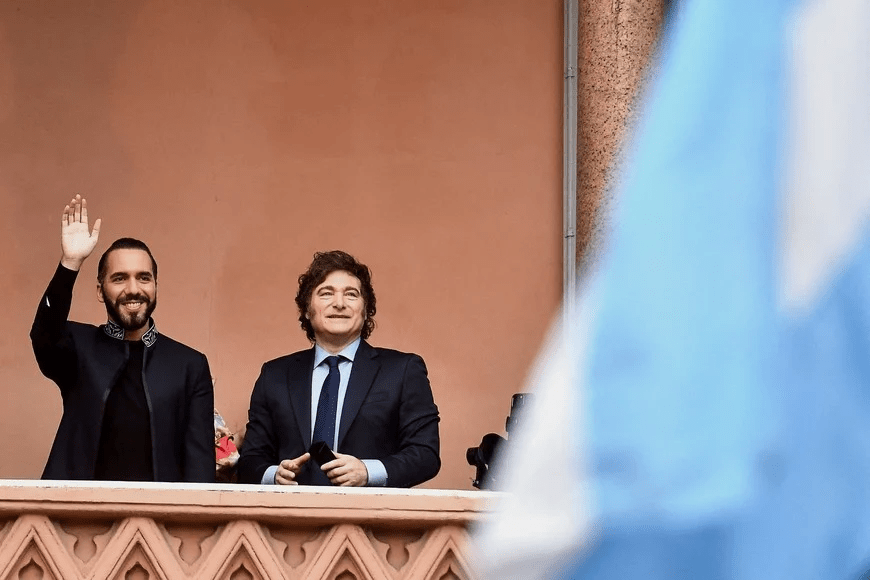 Luego de la reunión a solas, se sumaron al encuentro ampliado ministros de ambas administraciones. Por último, Milei y Bukele salieron a saludar desde uno de los balcones de la Rosada, como suele invitar a hacerlo el presidente argentino cada vez que recibe una personalidad, como el caso de Susana Giménez la semana anterior.