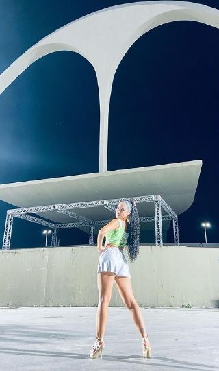 En la madrugada de este domingo, recorrerá el emblemático sambodromo "Marques de Sapucai" como una de las passistas de la escola G.R.E.S.E. IMPERIO DA TIJUCA.