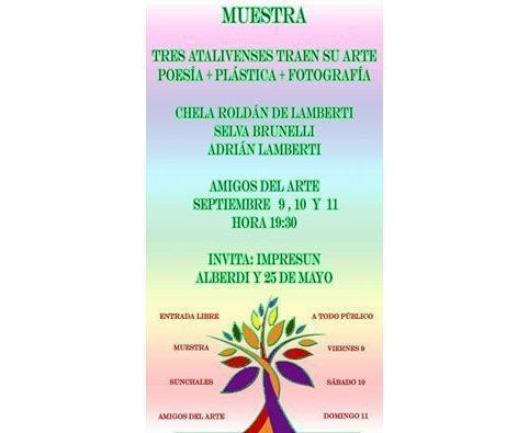Locales Nueva muestra en Amigos del Arte ·31 agosto, 2016 ·Marina Ferrero ·0 Comentario Reenviar Twittear Compartir Amigos del Arte trae una muestra de poesía, plástica y fotografía de la mano de tres atalivenses. Noticias relacionadas Operativos de atención de ANSES en todo el país: cómo será en Sunchales 14 abril, 2026 Nueva edición de Bioferia y Compostaje 14 abril, 2026 Enrico: “El Gobierno de Pullaro está construyendo en Sunchales un nuevo hospital cuatro veces más grande que el actual” 13 abril, 2026 El "Hospital Almícar Gorosito" incorpora un nuevo respirador portátil 10 abril, 2026 Taller "Mi futuro laboral" 9 abril, 2026 Nueva jornada del Quirófano Móvil 9 abril, 2026 Deja una respuestaTu dirección de correo electrónico no será publicada. Los campos obligatorios están marcados con *Nombre * Correo electrónico * Web Comentario * Navegación de entradas Siguiente noticiaAnterior noticia