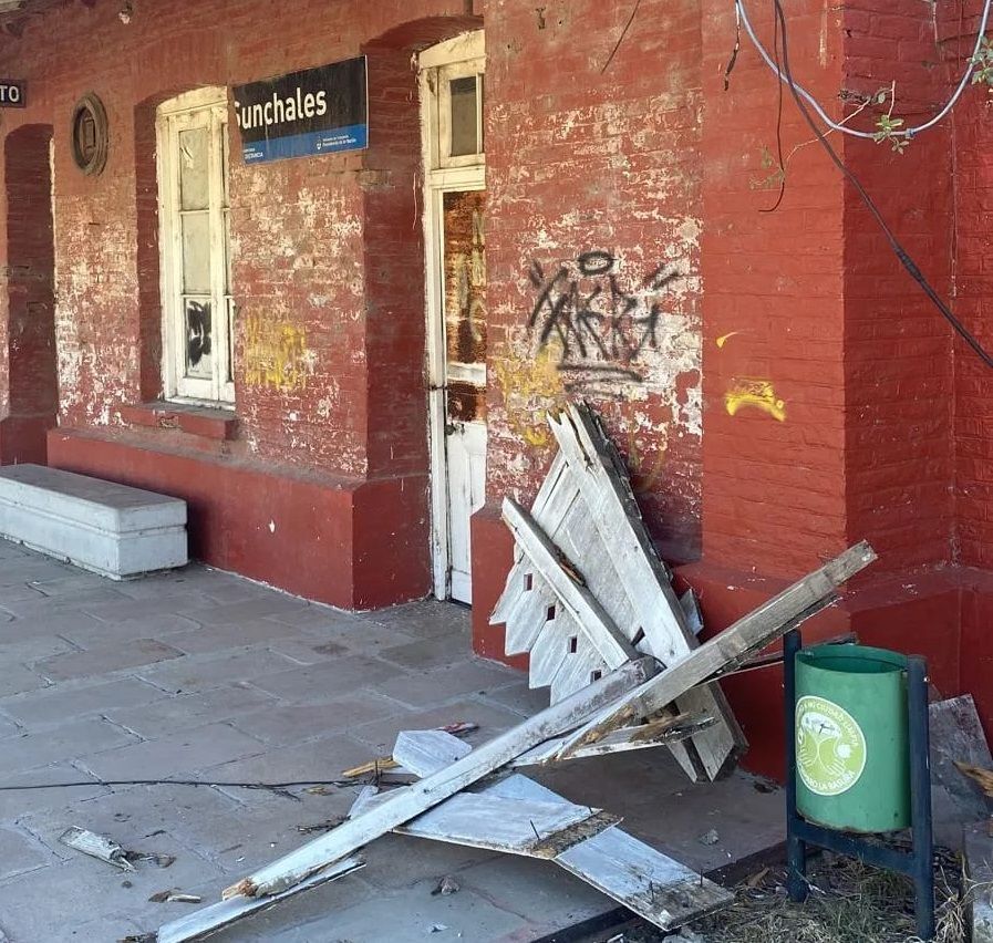 Por un lado, rompieron maderas del techo de la galería del andén Este. Por el otro, cortaron cables y dejaron sin luz una parte de las instalaciones.