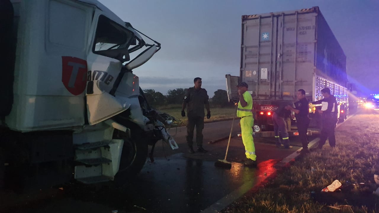 Un camión embistió a otro desde atrás. Está demorado el tránsito mientras se despeja la ruta. Ocurrió alrededor de las 19.30. Afortunadamente no hay heridos. Bomberos, Gendarmería y Policia trabajan en la zona.