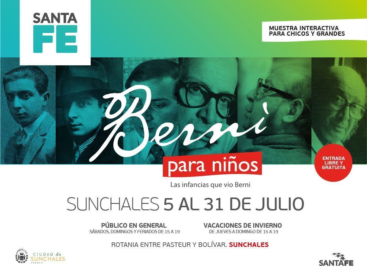La Municipalidad de Sunchales invita a la inauguración de la muestra de Berni para Niños, que se realizará mañana jueves 14 a las 10 en la Casa de la Historia de la Cultura y el Bicentenario con la presencia de la Ministra de Innovación y Cultura de la provincia, María de los Ángeles (Chiqui) González. Se podrá recorrer la muestra que permanecerá abierta desde mañana hasta el miércoles 3 de agosto.