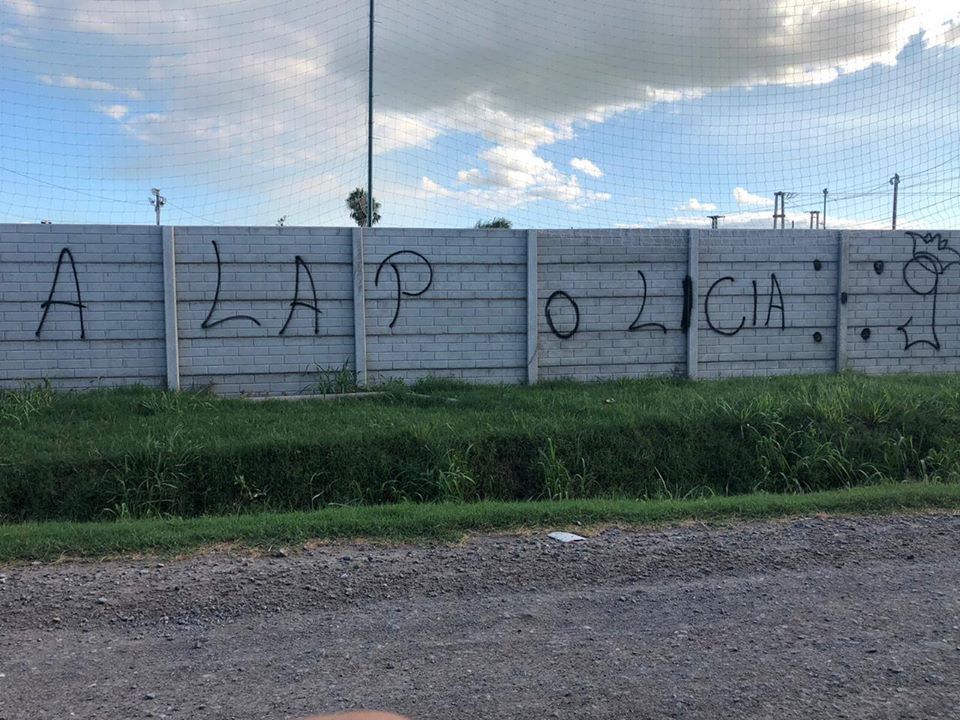 La escuelita de fútbol del Barrio 9 de Julio, además de una serie de hechos vandalicos que atentan contra su normal funcionamiento, apareció con una pintada en uno de sus tapiales. La cuál es intimidatoria contra la autoridad policial, los vecinos redactaron un comunicado mostrando su disconformidad y lo hicieron llegar a los medios de prensa.