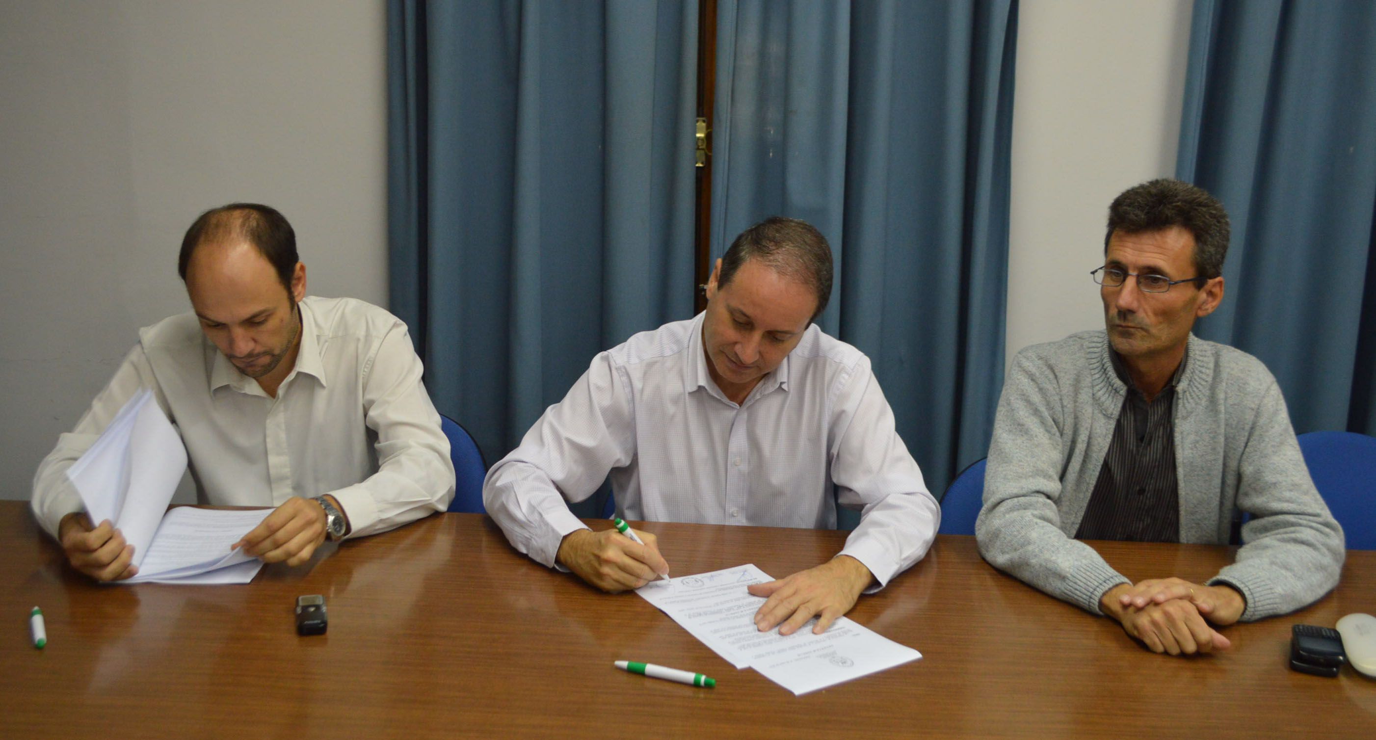 Acompañaron en la rúbrica, el Secretario de Coordinación y Gobierno, Gerardo Corroto, Secretario de Obras y Servicios Públicos, Adrián Sola, y el Director de Inversión Pública, Fernando Cattáneo.