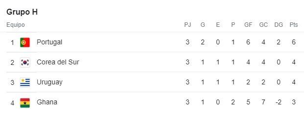 Sin embargo, en la hora encontraron el 2-1 y desplazaron a Uruguay al tercer lugar de la Zona "H" de la Copa del Mundo que se está desarrollando en Qatar. ¿La razón?