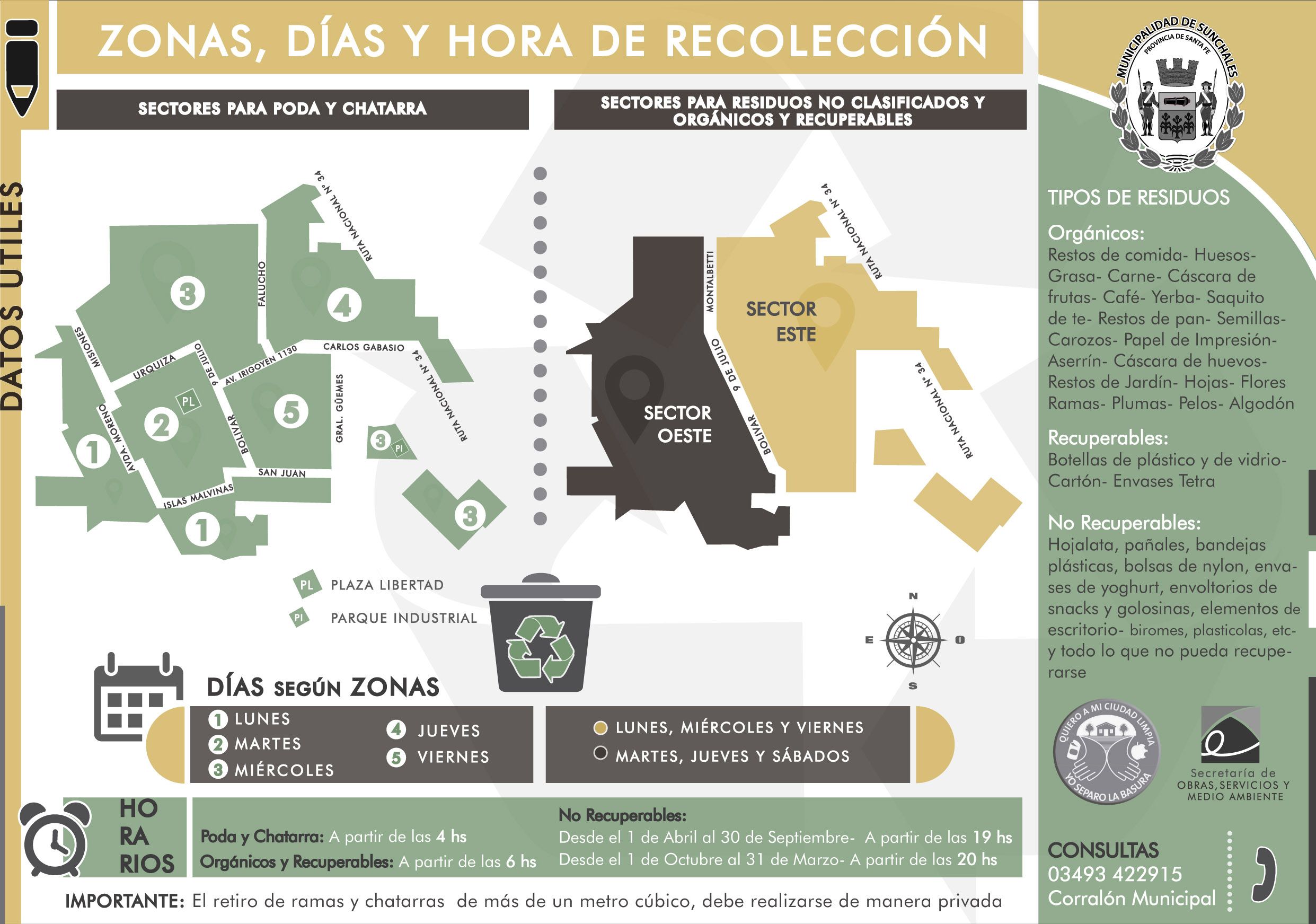 La Municipalidad de Sunchales informa a la población respecto a los SERVICIOS DE RECOLECCIÓN DE RESIDUOS que se prestarán por los FERIADOS DE SEMANA SANTA. Solicitamos la colaboración de los vecinos, especialmente al momento de depositarlos en la vía pública, respetando los días, horarios y forma correcta de disponerlos para evitar molestias que perjudiquen a la población en general.