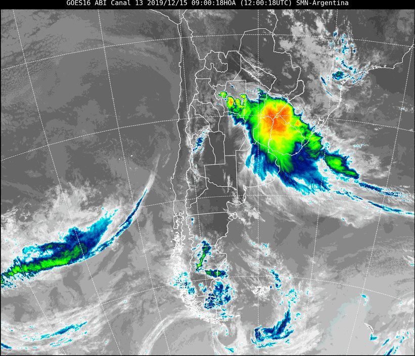 Se preve que durante el transcurso del día de hoy domingo 15 los fenómenos se generalicen en la región propagándose hacia el norte del área de cobertura, mejorando gradualmente las condiciones de sur a norte.