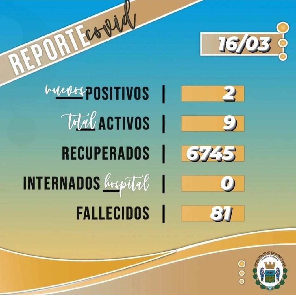 CoronavirusLocales Reporte Epidemiológico: 2 nuevos contagios de Coronavirus en la ciudad ·16 marzo, 2022 ·Lisandro D'Angelis Reenviar Twittear Compartir Así lo acaba de anunciar el Departamento de Prensa del Municipio. Actualmente, son nueve las personas que se encuentran cursando la enfermedad. Noticias relacionadas Sunchales reconoce a cooperativas y mutuales escolares 6 octubre, 2025 Pablo Farías: “Desde Provincias Unidas queremos llevar al Congreso el estilo de gestión que tenemos en Santa Fe” 6 octubre, 2025 Corte de energía programado para este domingo 5 3 octubre, 2025 El intendente Pinotti mantuvo una reunión con el gobernador Pullaro 1 octubre, 2025 Pinotti presentó la revitalización del Predio Ferroviario que demandará una inversión de 820 millones de pesos 30 septiembre, 2025 Pinotti impulsa obras hídricas, pavimento y equipamiento municipal en su encuentro con el gobernador 30 septiembre, 2025 Navegación de entradas Siguiente noticiaAnterior noticia