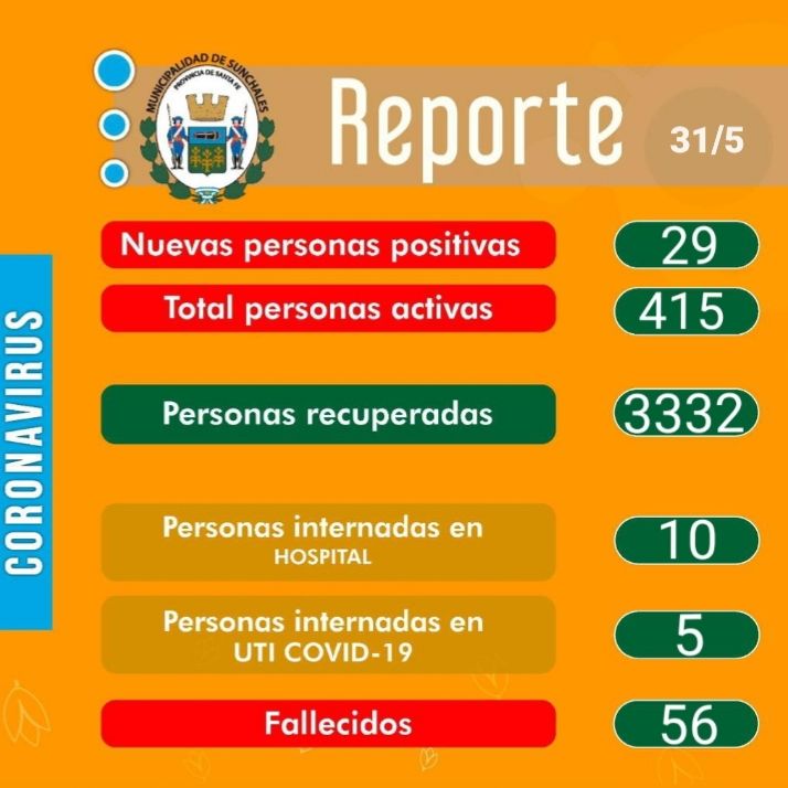 CoronavirusLocales Reporte Epidemiológico: 29 nuevos casos de Coronavirus en nuestra ciudad ·31 mayo, 2021 ·Grupo Meridiano Reenviar Twittear Compartir Así lo acaba de informar el Municipio. Los activos están en descenso: son 415. Mientras tanto, hay 10 personas internadas en el Hospital "Almícar Gorosito" y 5 en la Unidad de Terapia Intensiva. Noticias relacionadas Sunchales reconoce a cooperativas y mutuales escolares 6 octubre, 2025 Pablo Farías: “Desde Provincias Unidas queremos llevar al Congreso el estilo de gestión que tenemos en Santa Fe” 6 octubre, 2025 Corte de energía programado para este domingo 5 3 octubre, 2025 El intendente Pinotti mantuvo una reunión con el gobernador Pullaro 1 octubre, 2025 Pinotti presentó la revitalización del Predio Ferroviario que demandará una inversión de 820 millones de pesos 30 septiembre, 2025 Pinotti impulsa obras hídricas, pavimento y equipamiento municipal en su encuentro con el gobernador 30 septiembre, 2025 Navegación de entradas Siguiente noticiaAnterior noticia