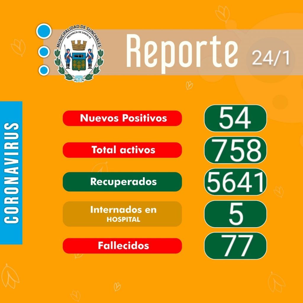 CoronavirusLocales Reporte Epidemiológico: 54 nuevos contagios de Coronavirus en la ciudad ·25 enero, 2022 ·Lisandro D'Angelis Reenviar Twittear Compartir Así lo comunicó en la noche de ayer el Departamento de Prensa del Municipio. Los casos activos son 758 y actualmente hay 5 personas internadas en el Hospital. Noticias relacionadas Sunchales reconoce a cooperativas y mutuales escolares 6 octubre, 2025 Pablo Farías: “Desde Provincias Unidas queremos llevar al Congreso el estilo de gestión que tenemos en Santa Fe” 6 octubre, 2025 Corte de energía programado para este domingo 5 3 octubre, 2025 El intendente Pinotti mantuvo una reunión con el gobernador Pullaro 1 octubre, 2025 Pinotti presentó la revitalización del Predio Ferroviario que demandará una inversión de 820 millones de pesos 30 septiembre, 2025 Pinotti impulsa obras hídricas, pavimento y equipamiento municipal en su encuentro con el gobernador 30 septiembre, 2025 Navegación de entradas Siguiente noticiaAnterior noticia