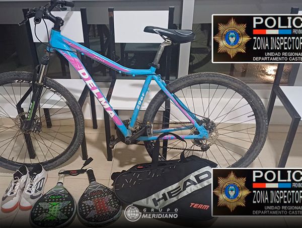 Por lo que personal policial revisó los techos de la vivienda y aledaños, hallando el birrodado en cuestión, procediendo al formal secuestro del mismo, como así también de un bolso color negro de pádel, un par de zapatillas