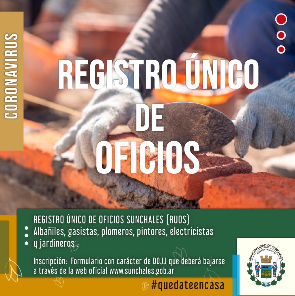 La Municipalidad de la Ciudad de Sunchales impulsa el “Registro Único de Oficios de Sunchales”, (RUOS) para promocionar actividades de servicios, ejercidas en algunos casos por sectores vulnerables.
