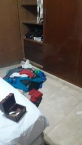 Llegaron a su casa pasada la medianoche luego de brindar por la llegada de la navidad, la sorpresa fue desagradable al encontrarse con los malvivientes dentro de su casa. Los vieron salir y al ingresar tenían la casa literalmente revuelta.