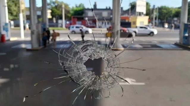 Un hombre llegó a bordo de una moto e ingresó por la zona donde están los surtidores de GNC: se detuvo, arrojó una bolsa o un papel al piso, extrajo un arma y comenzó a disparar.