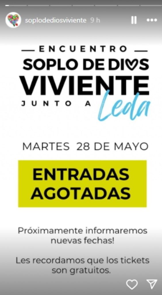 Leda Bergonzi encabezará un nuevo encuentro espiritual en la ex Rural el próximo 28 de mayo, pero ya no hay entradas disponibles. La convocatoria sigue siendo masiva en la ciudad como también en las localidades en las que Soplo de Dios Viviente se presenta, como sucedió en Santos Lugares, Buenos Aires. La mujer a la que se le atribuyen sanaciones corporales y espirituales, en tanto, estará en Corrientes pero como cantante religiosa, es decir, no encabezando un encuentro con bendiciones como suele hacer en la ex rural. El 29 de mayo, en tanto, estrena nuevo tema musical.
