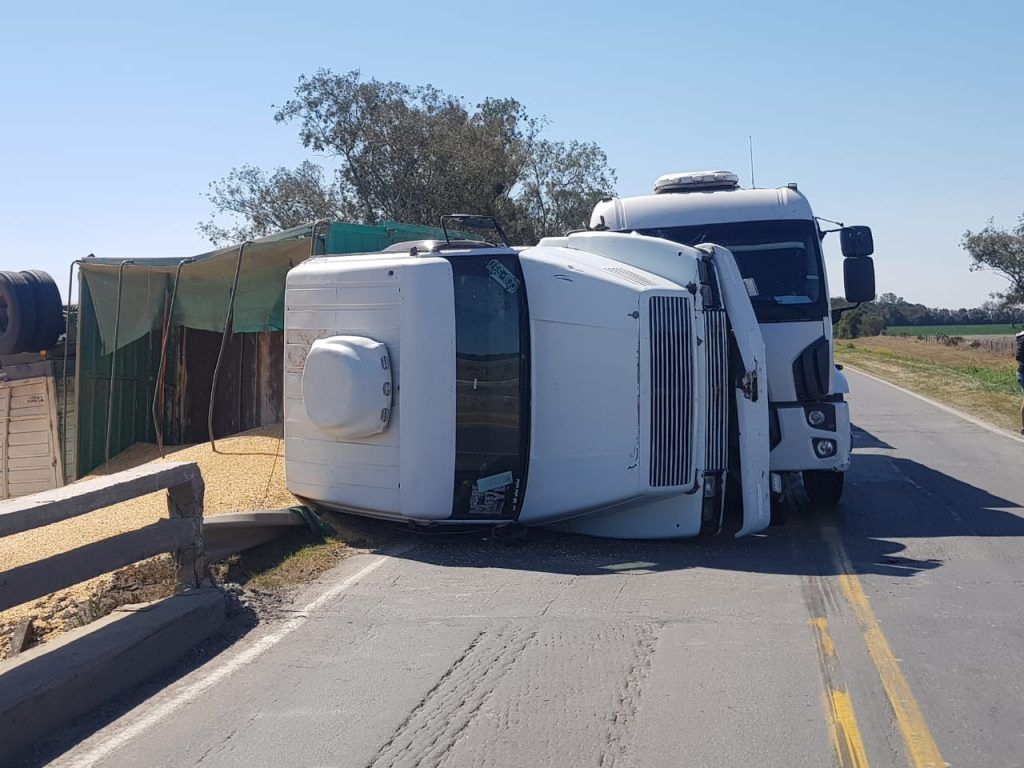 Ocurrió en el km 232/3 en el puente “Las Penquitas” jurisdicción de Lehmann. El vehículo transportaba soja.