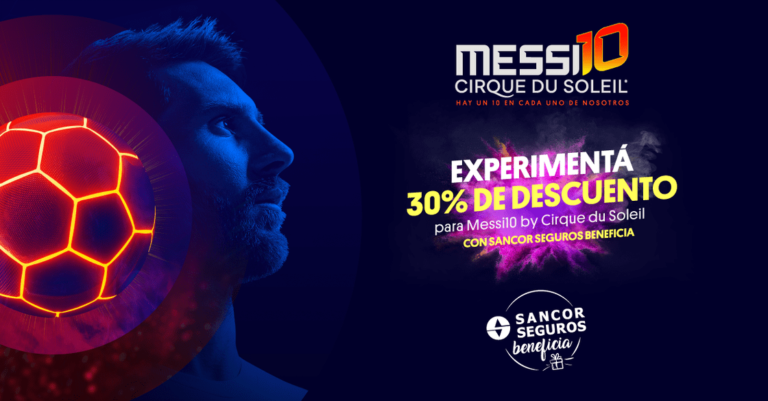 Desde mediados de 2018, SANCOR SEGUROS tiene como imagen a Lionel Messi, el futbolista N° 1 del mundo. Esta asociación ahora se refuerza con el acompañamiento de la aseguradora a “Messi10 by Cirque du Soleil” durante su paso por Argentina, que sucederá en junio de 2020. Como parte de este patrocinio, quienes estén adheridos al programa SANCOR SEGUROS Beneficia podrán acceder, hasta el 29 de febrero, a un 30% de descuento en la compra de entradas para disfrutar de uno de los espectáculos más recomendados a nivel internacional.