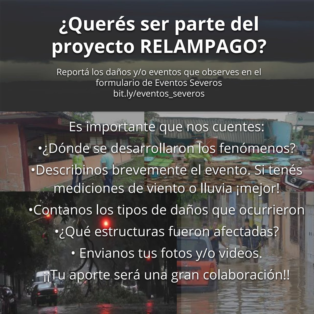 “¿Conocés el #ProyectoRELAMPAGO? Durante la campaña @RELAMPAGO2018 se va a documentar el ciclo de vida de las tormentas más intensas del planeta!! Envianos tu reporte – https://t.co/AQS8JQs9kN”