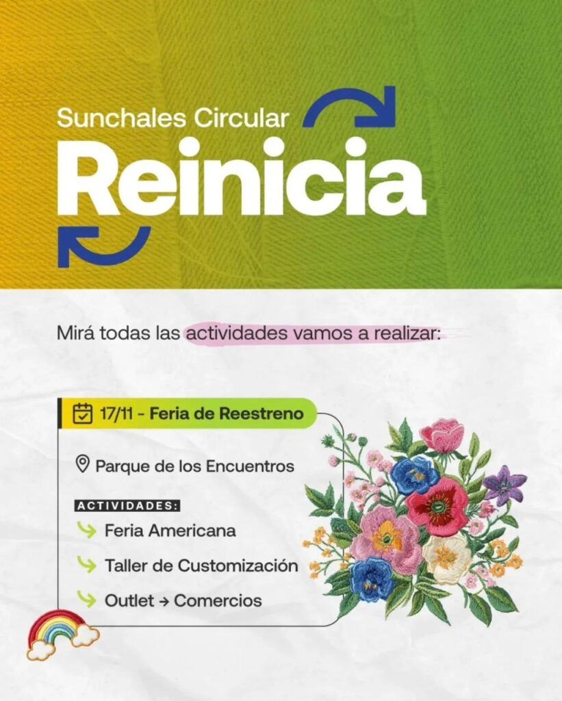 En el marco del Día de la Economía Circular, la Subsecretaría de Economía Social y Solidaria de Sunchales invita a la comunidad a participar en una semana completa de actividades bajo el lema "Sunchales Circular: Reinicia". El objetivo es promover la cultura de la sostenibilidad a través de la práctica y la conciencia comunitaria, enfocada en repensar, reducir, reutilizar y reciclar. Los encuentros tendrán lugar en dos puntos clave de la ciudad: el Parque de los Encuentros y la Casa Steigleder.