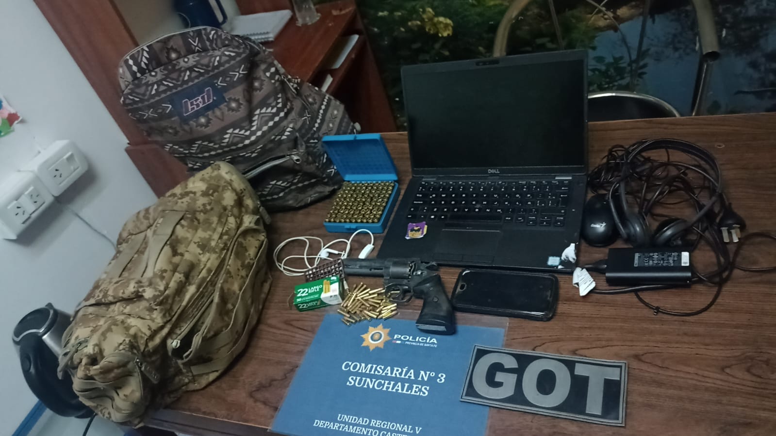 Allí se secuestró un revólver calibre 22 y 10 cartuchos, 3 de ellos servidos.