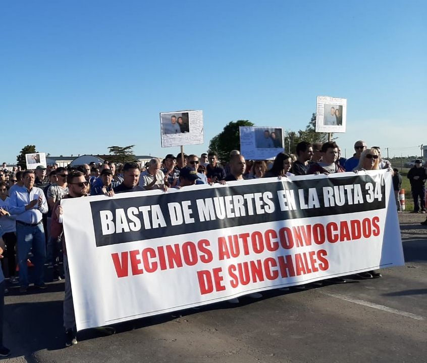 Bajo la consigna «Sunchales dice basta – ¡Ni una víctima más!» la concentración se inició puntualmente, poco después de las 17.30, y convocó a una numerosa cantidad de manifestantes que en forma pacífica, y con un cartel que decía «Basta de muertes en la ruta 34 – Vecinos autoconvocados de Sunchales», subieron a la calzada para hacer sentir su descontento. Varios vecinos portaban también pancartas con fotos de las personas que resultaron víctimas de estos trágicos accidentes, todos vecinos de Sunchales o de localidades muy cercanas, como Ataliva.