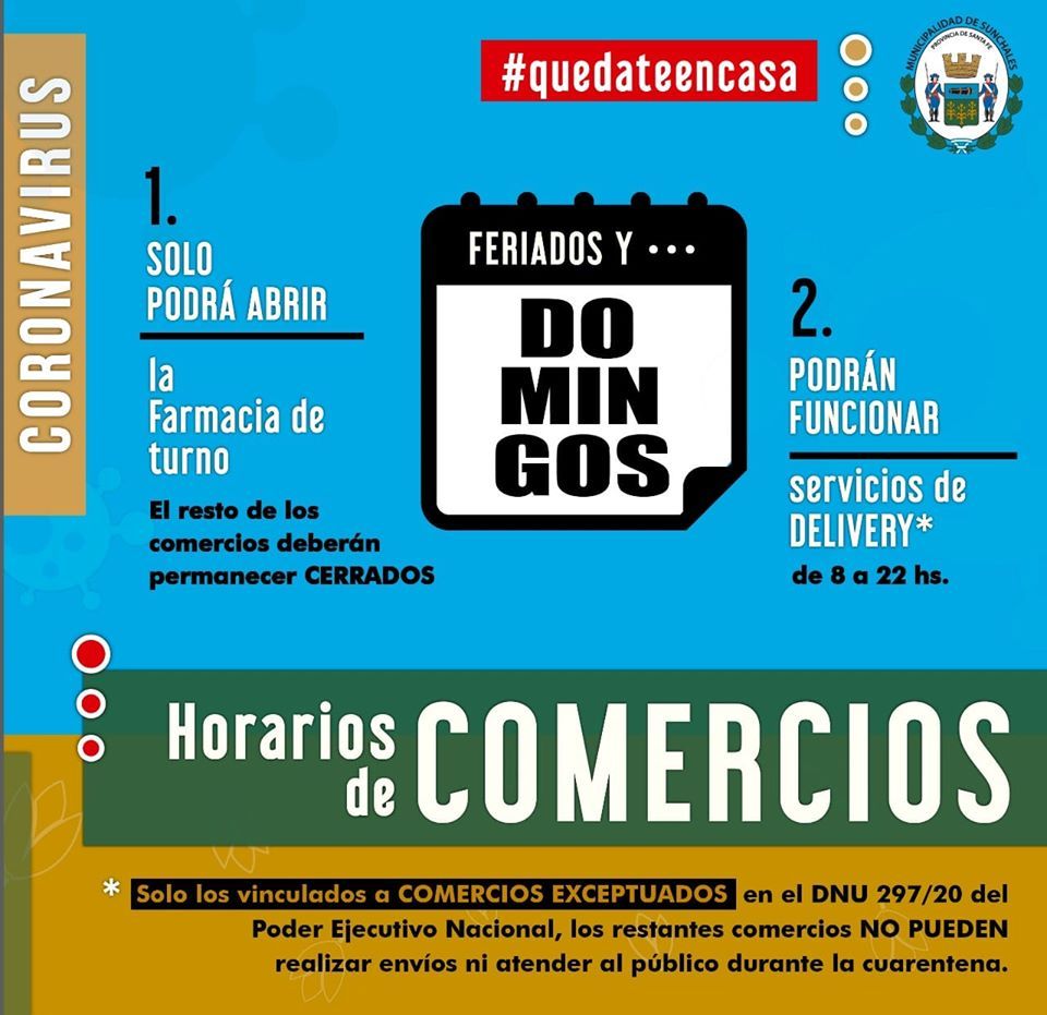 ✅La Municipalidad informa que durante días domingos y feriados, sólo podrá mantener su comercio abierto la farmacia de turno asignada para el día correspondiente.