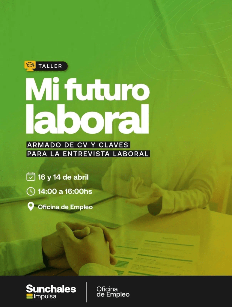 El mismo se desarrollará en la Oficina de Empleo (Balbín 333) el 14 y 16 de abril, de 14:00 a 16:00 ambos días. Las inscripciones pueden realizarse por medio del teléfono 3493-443337 o acercándose a la Oficina de Empleo.