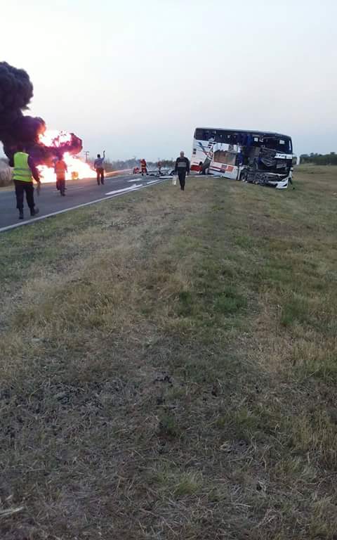 Según la información aportada por el Director de Protección Civil Daniel Chersich, el camión venía cargado con alcohol, y aparentemente se habría adelantado sin observar al micro en la mano contraria; lo que ocasionó la colisión y de inmediato se produjo el incendio del rodado que transportaba líquido altamente inflamable. Lo que derivó en el deceso del conductor del mismo, aparentemente de origen boliviano.
