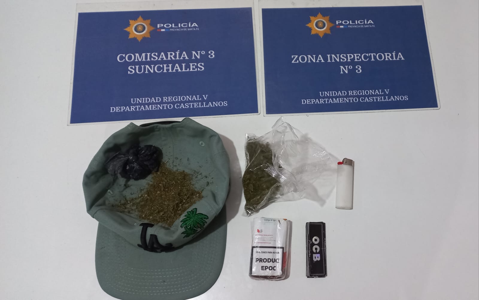 Agentes de la AIC DRO V siguen la investigación vinculada a la sustancia que tenía en su poder y numerarios de la Comisaría local demoraron al muchacho por la portación del arma blanca.