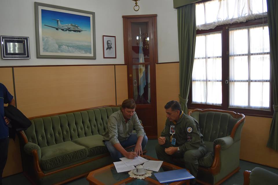 Junto al Vicepresidente Ing Marcelo Bergese y el Jefe de la III Brigada Aérea Comodoro Darío Quiroga, presenciaron la firma del comodato, el ayudante del jefe de brigada Suboficial Mayor Sergio Schoenseld, el padrino de este emprendimiento Suboficial Mayor (RE) Alejandro Marcori y el Cpn Diego Colombo iniciador de la gestión Pucará en Ataliva.