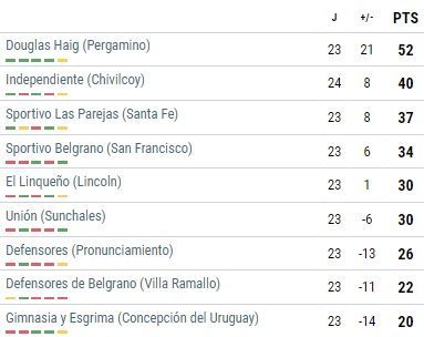 En tanto, Unión se encuentra sexto con 30 unidades.