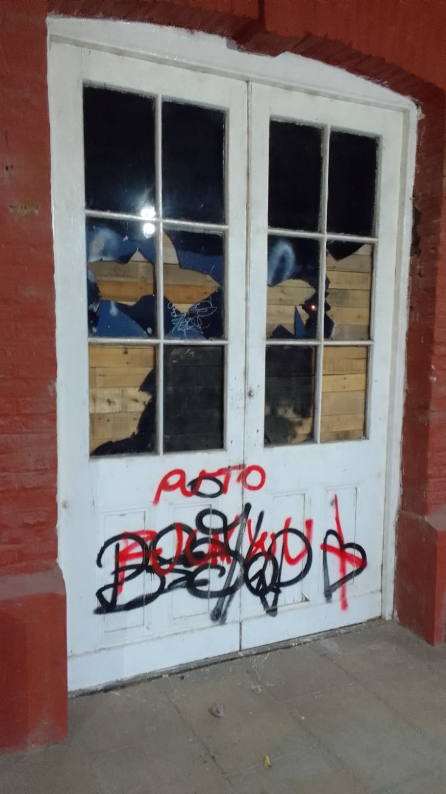 Otra vez pintadas, vidrios rotos y piedras esparcidas. Todo a pocos metros de la base de la GOT. Se desconoce a los autores, pero se sabe que el hecho se perpetró entre sábado y domingo.