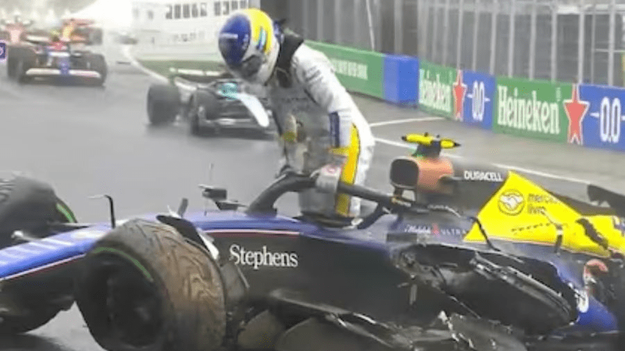 Alex Albon no corrió por el choque que tuvo horas antes de la largada, mientras que Franco Colapinto venía con un buen desempeño, pero la lluvia y la falta de una buena estrategia por parte del equipo para cambiar los neumáticos (Wet) a tiempo hizo que el argentino perdiera adherencia y por ende estrellara su FW46 contra el muro de contención.