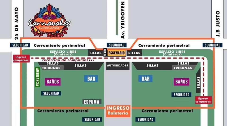 Locales Carnavales Sunchales: Así estarán distribuidas las áreas dentro del Corsódromo ·16 febrero, 2023 ·Lisandro D'Angelis Reenviar Twittear Compartir Desde el Área de Prensa del Municipio dieron a conocer en redes sociales el plano de como estará organizado el evento los próximos sábado y domingo. La programación comenzará a las 21:00 horas en ambas jornadas. Noticias relacionadas Operativos de atención de ANSES en todo el país: cómo será en Sunchales 14 abril, 2026 Nueva edición de Bioferia y Compostaje 14 abril, 2026 Enrico: “El Gobierno de Pullaro está construyendo en Sunchales un nuevo hospital cuatro veces más grande que el actual” 13 abril, 2026 El "Hospital Almícar Gorosito" incorpora un nuevo respirador portátil 10 abril, 2026 Taller "Mi futuro laboral" 9 abril, 2026 Nueva jornada del Quirófano Móvil 9 abril, 2026 Navegación de entradas Siguiente noticiaAnterior noticia